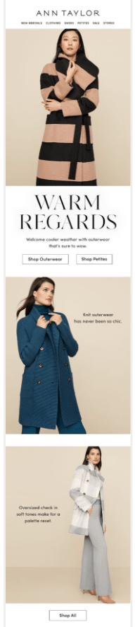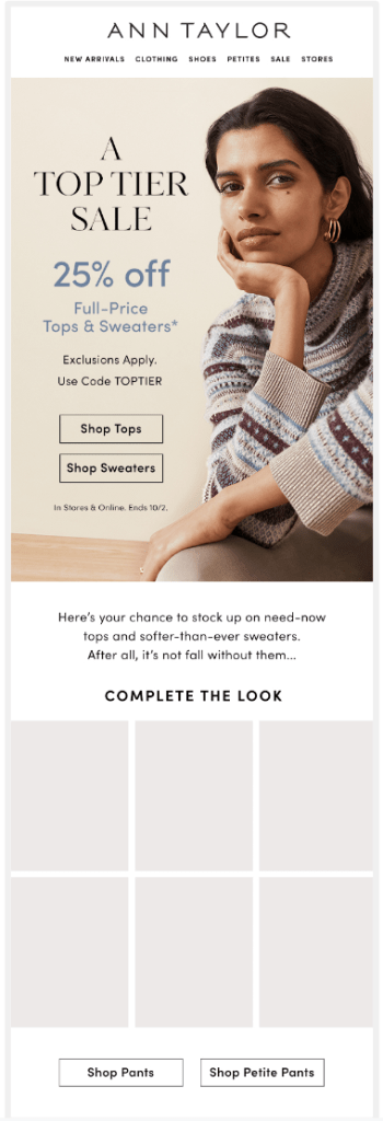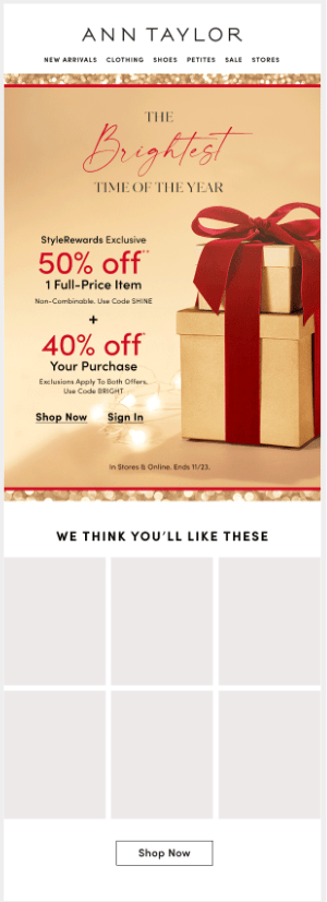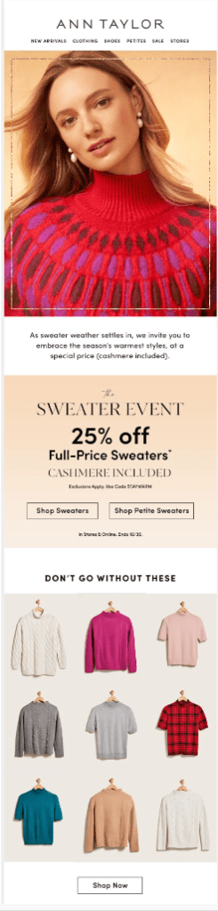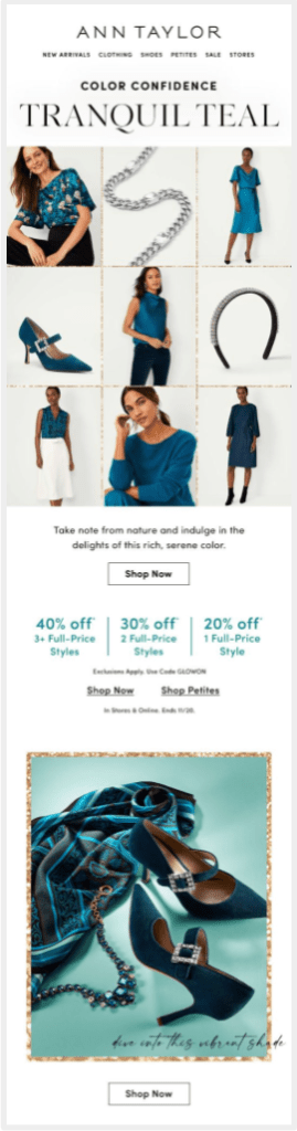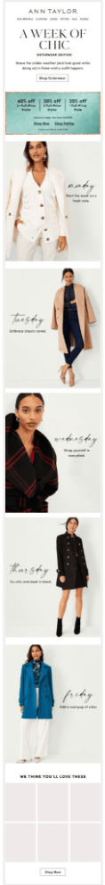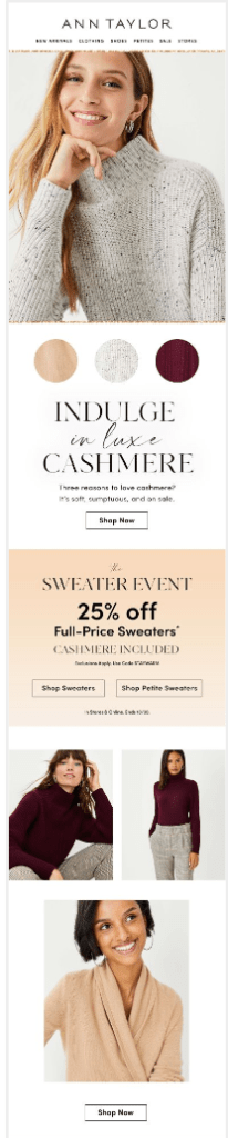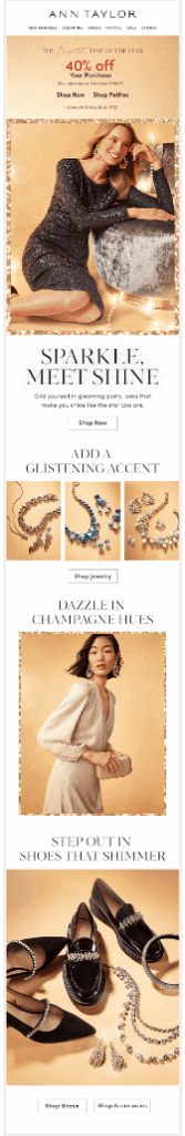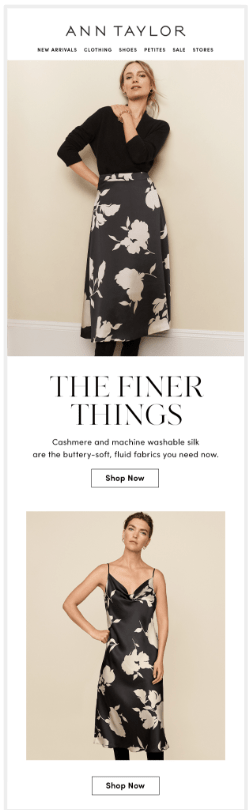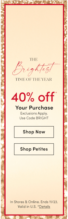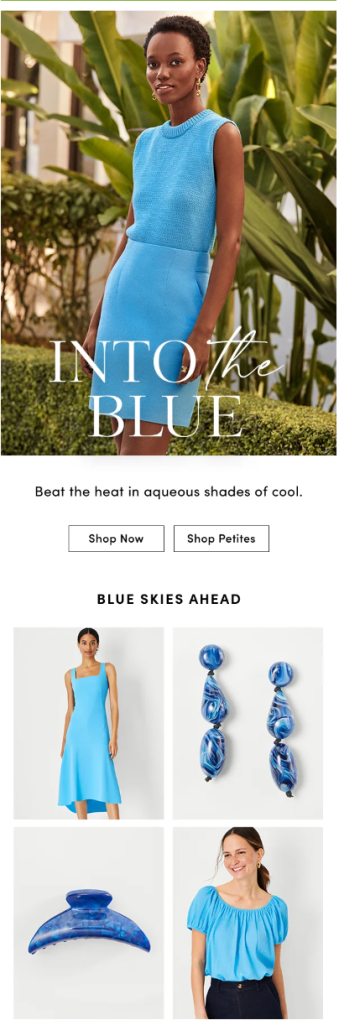 Here you’ll find various site, email and digital assets from the brand Ann Taylor. I am responsible for the copy in these pieces.